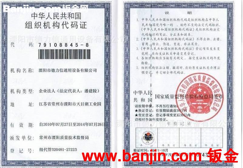 公司名称: | 江苏省溧阳市德力信通用设备有限公司 |